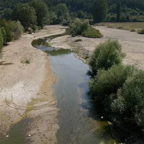 Флората включва типични средиземноморски и континентални елементи – дъбови гори, хвойнови храсти, тревни степи и редки видове орхидеи. По бреговете растат елши и върби, които стабилизират почвите и предпазват от ерозия.